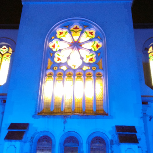 front windows of the chapel have been lit up. If you haven’t seen them yet, come